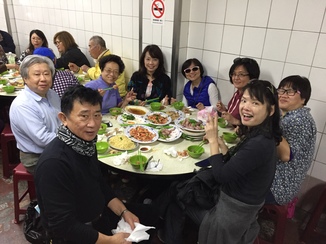 在金山廣安宮前大啖金山鴨肉 |